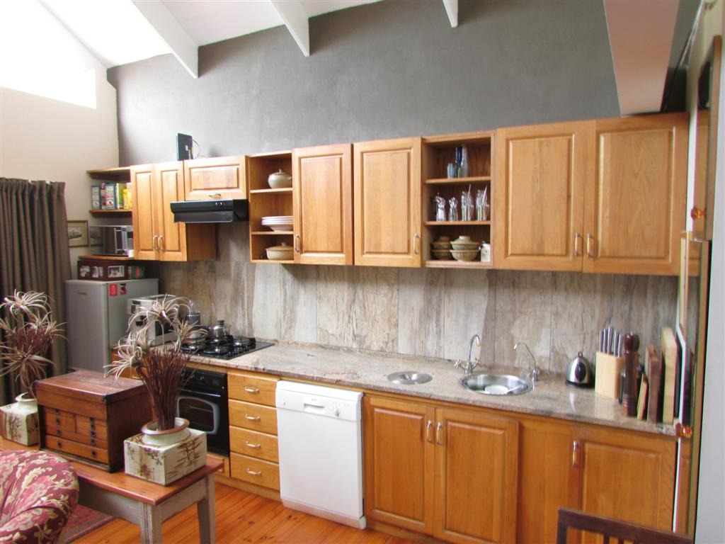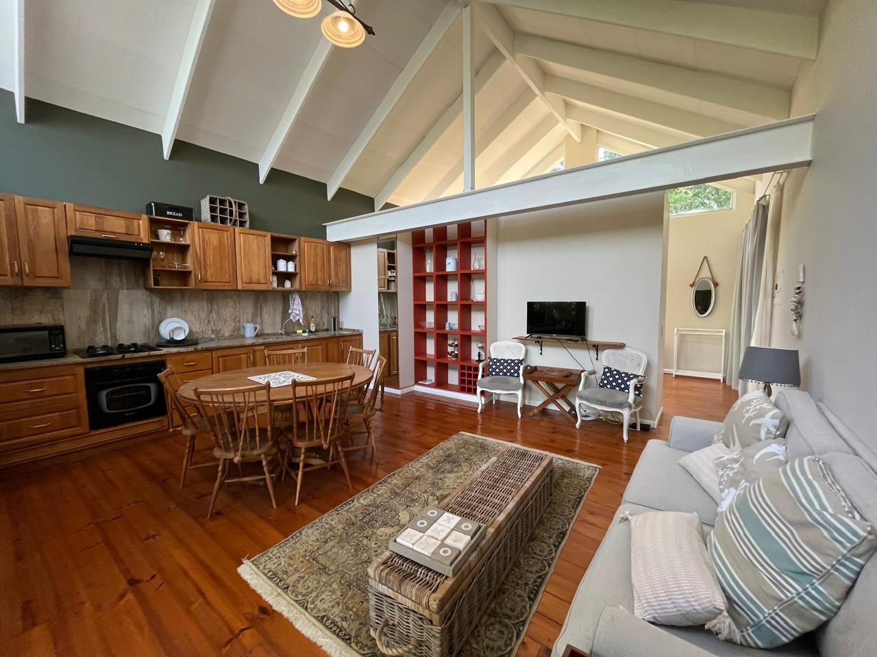 This neat and clean self contained apartment is in great condition and is available to let from 1st August 2025 on long lease. Flat 3 is upstairs and is the back flat of 3 flats above the smaller shops below. The Postmasters Village is a mixed use commercial and residential block comprising a number of shops below, with 3 flats above. The shops all close by 5pm daily, so there is no disturbance after hours from shops/ customers. There is a door into the complex that is locked when shops close, then a further locked door to access the staircase from within - The apartment has Trellidoors for extra security. The tastefully furnished apartment has a large open plan living area, with double volume ceilings, with a bedroom area and bathroom behind, plus sep loo. There is a lovely undercover patio to relax on. The apartment would suit a professional couple or single person. No pets allowed. There is wifi - tenant to arrange own provider and pay monthly contract. There is no secure parking, but a vehicle can be parked outside in front of the building. Elec and water use for tenants account. Small levy for utilities and maintenance of complex also due monthly. Rent plus deposit payable upfront. Min 1 year lease available to qualified credit worthy suitable tenant/s.