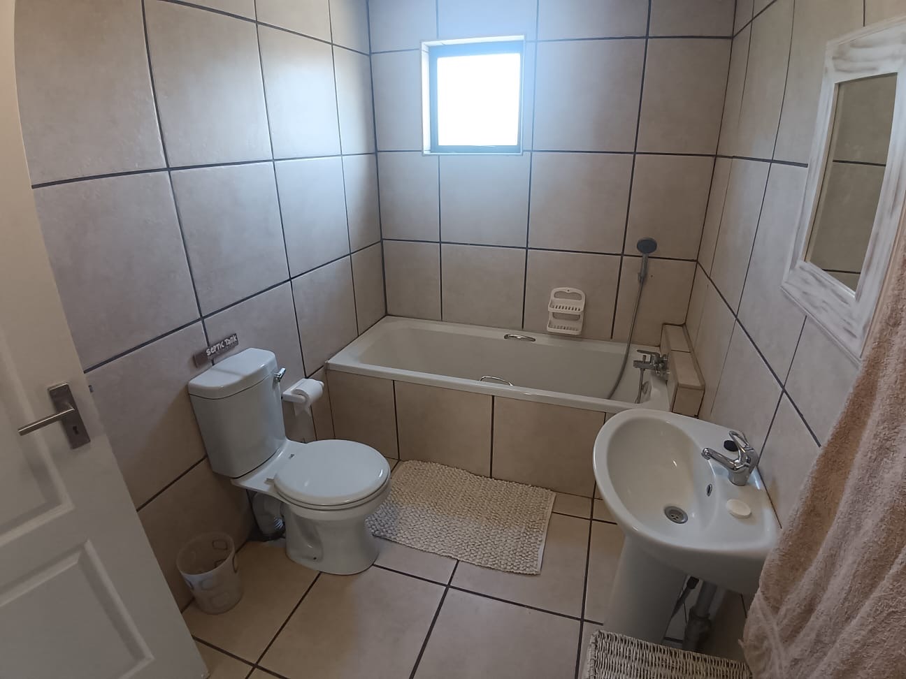 Security is paramount, with an alarm system, 24-hour security, and burglar bars for peace of mind. A battery inverter ensures uninterrupted power, while water tanks contribute to resilience and sustainable living. There is additional storage space on the NE side of the house.