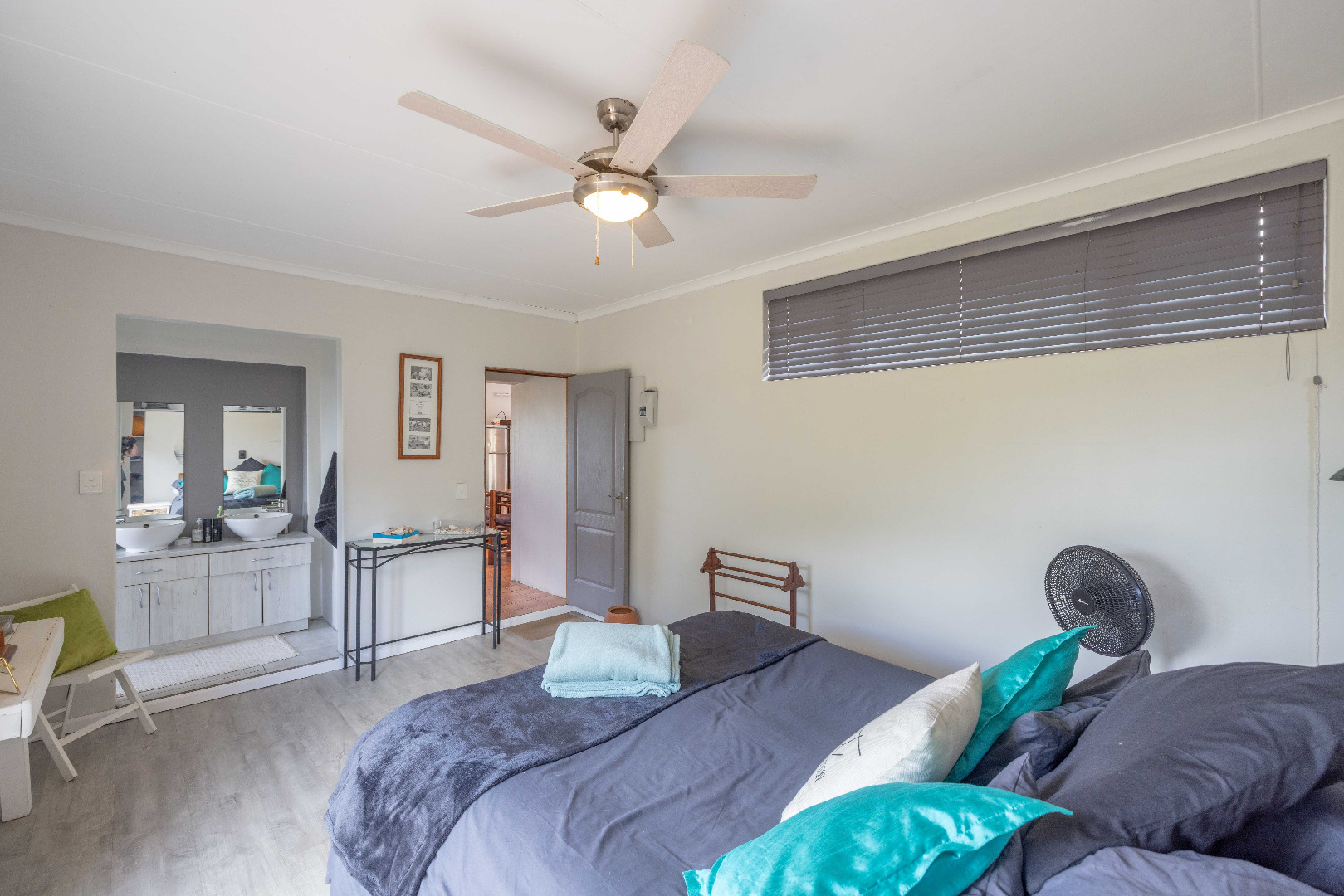 Providing comfortable accommodation, the home features three well-sized bedrooms. There are two modern bathrooms that serve the household, with the main being an en-suite. An added bonus of a walk-in closet is a feature in the main bedroom and a small study an added perk to one of the additional rooms.