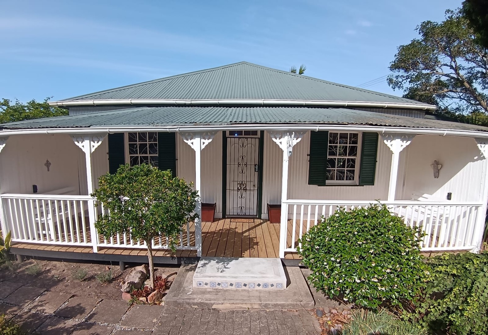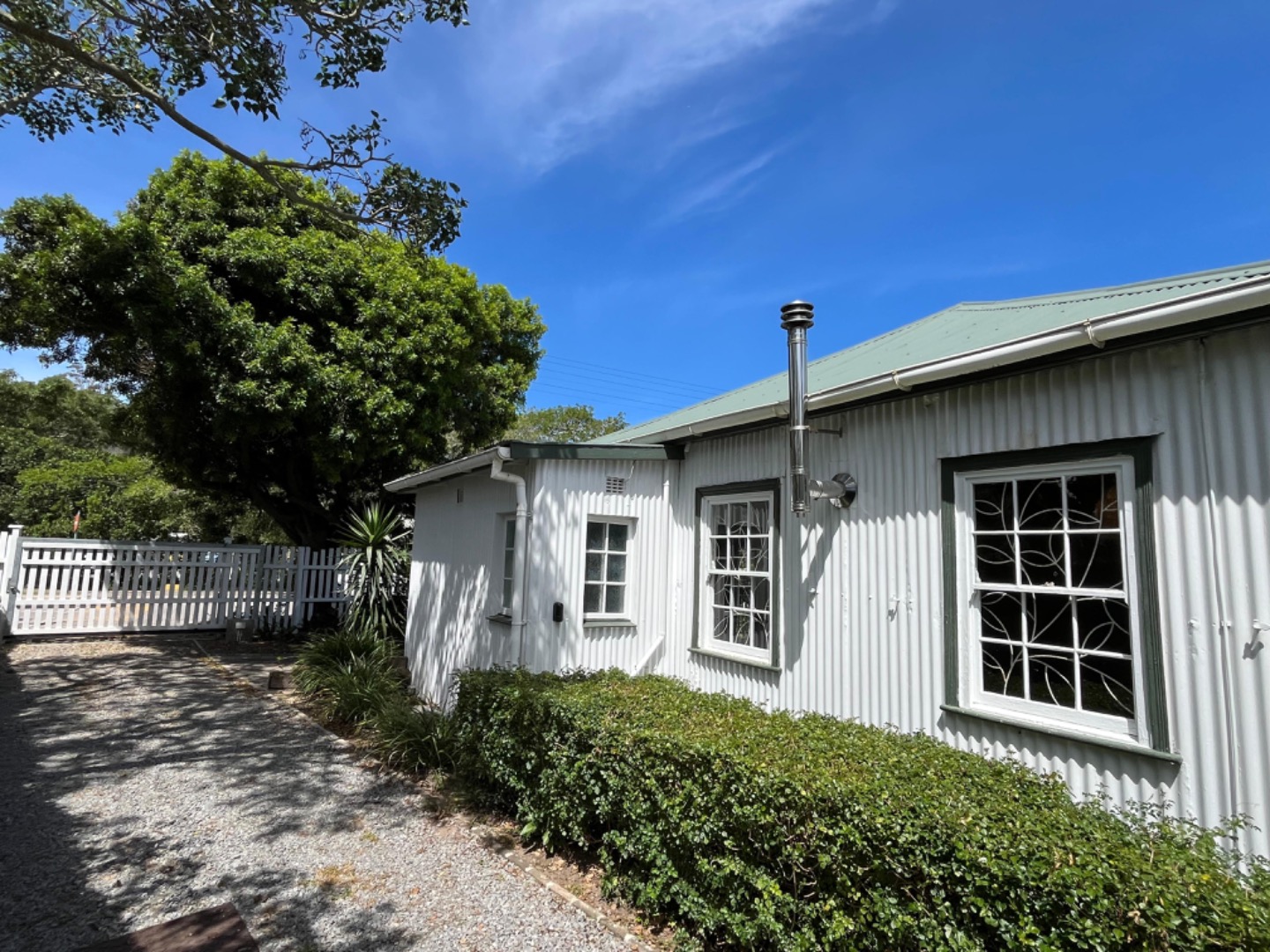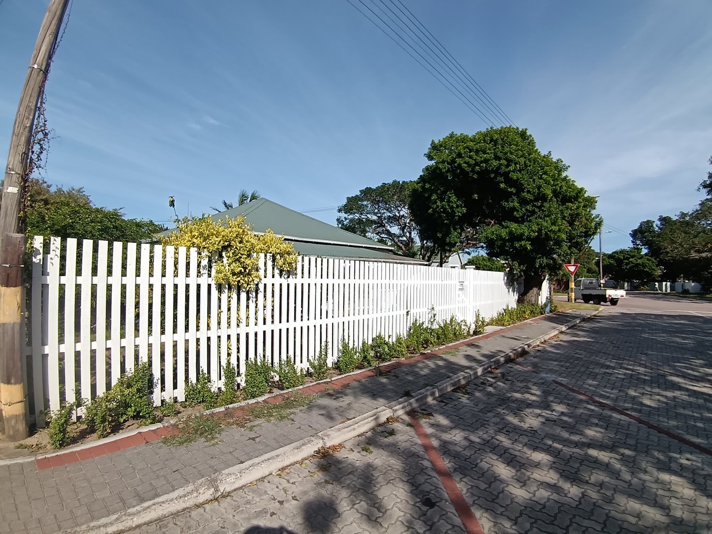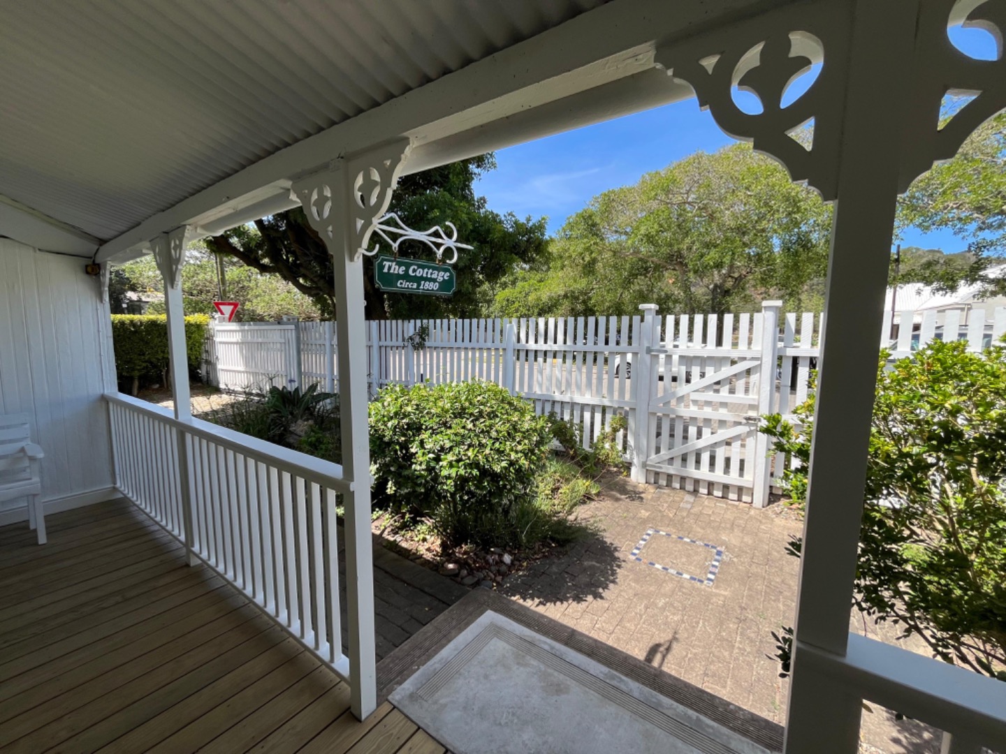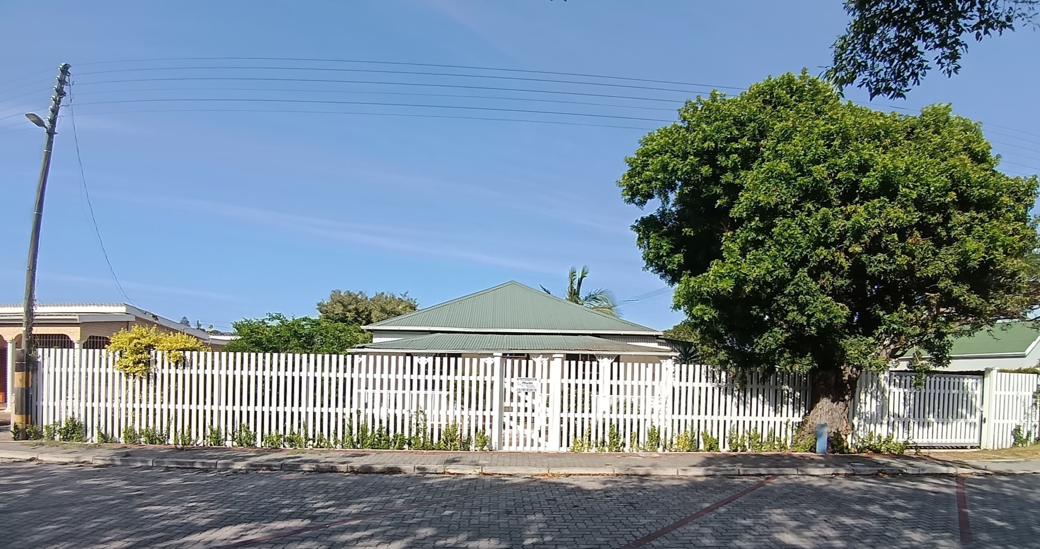 Discover this charming 'Circa 1880' heritage cottage, a delightful residential/commercial property nestled in the coastal and suburban heart of Port Alfred Central, South Africa. Boasting exceptional kerb appeal, the home features a freshly painted white exterior/interior, a classic green corrugated roof, and a welcoming full-width wooden veranda with decorative posts and dark green shutters. A well-maintained white picket fence and established greenery enhance its inviting facade, complemented by an ornate security gate. The wooden sash windows with ornated steel burglar bars add to the charm of this wood and iron property.