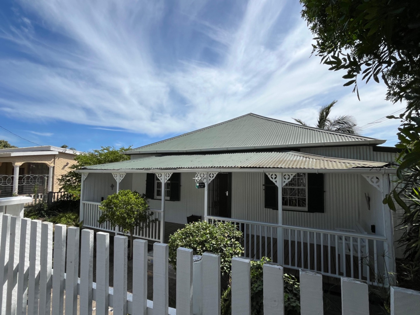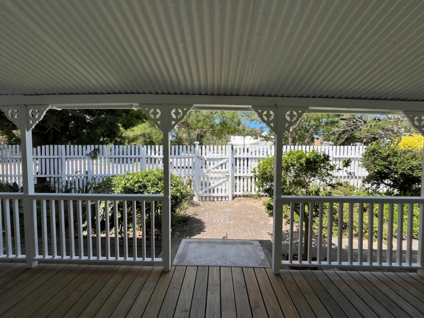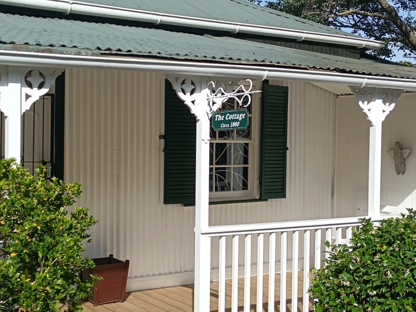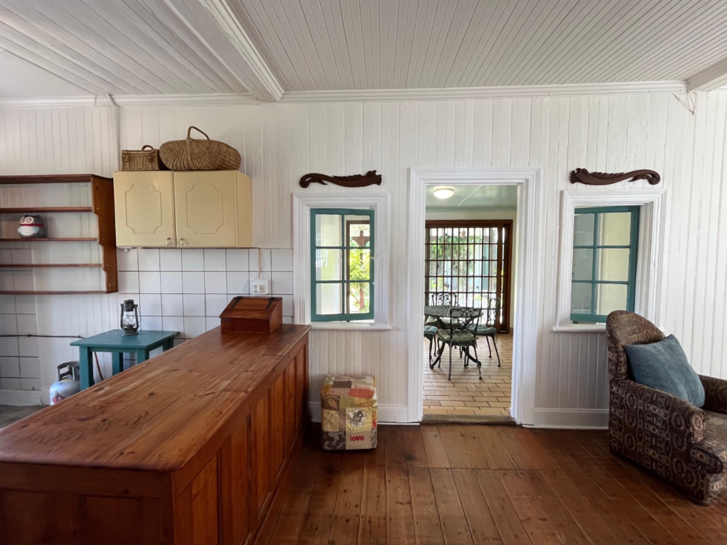 Discover this charming 'Circa 1880' heritage cottage, a delightful residential/commercial property nestled in the coastal and suburban heart of Port Alfred Central, South Africa. Boasting exceptional kerb appeal, the home features a freshly painted white exterior/interior, a classic green corrugated roof, and a welcoming full-width wooden veranda with decorative posts and dark green shutters. A well-maintained white picket fence and established greenery enhance its inviting facade, complemented by an ornate security gate. The wooden sash windows with ornated steel burglar bars add to the charm of this wood and iron property.