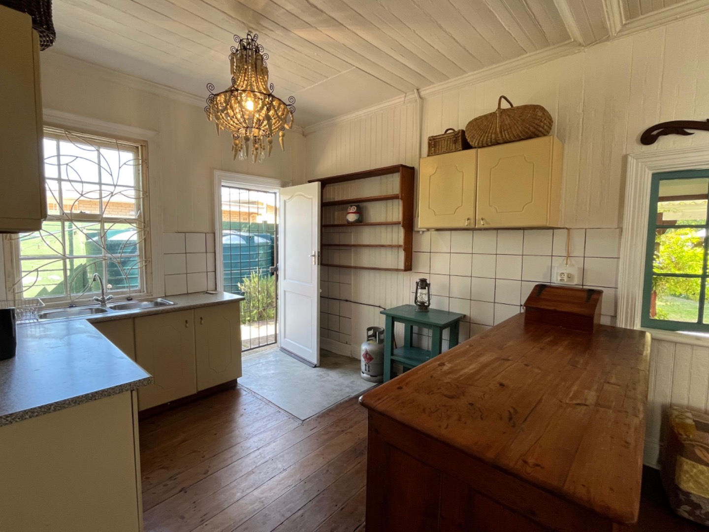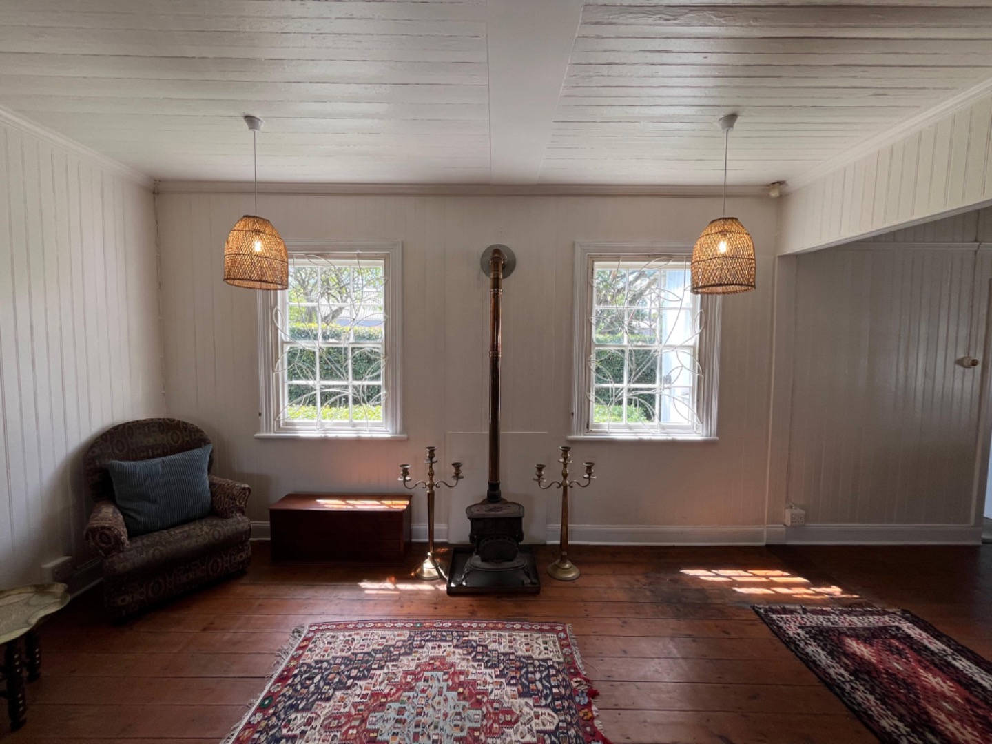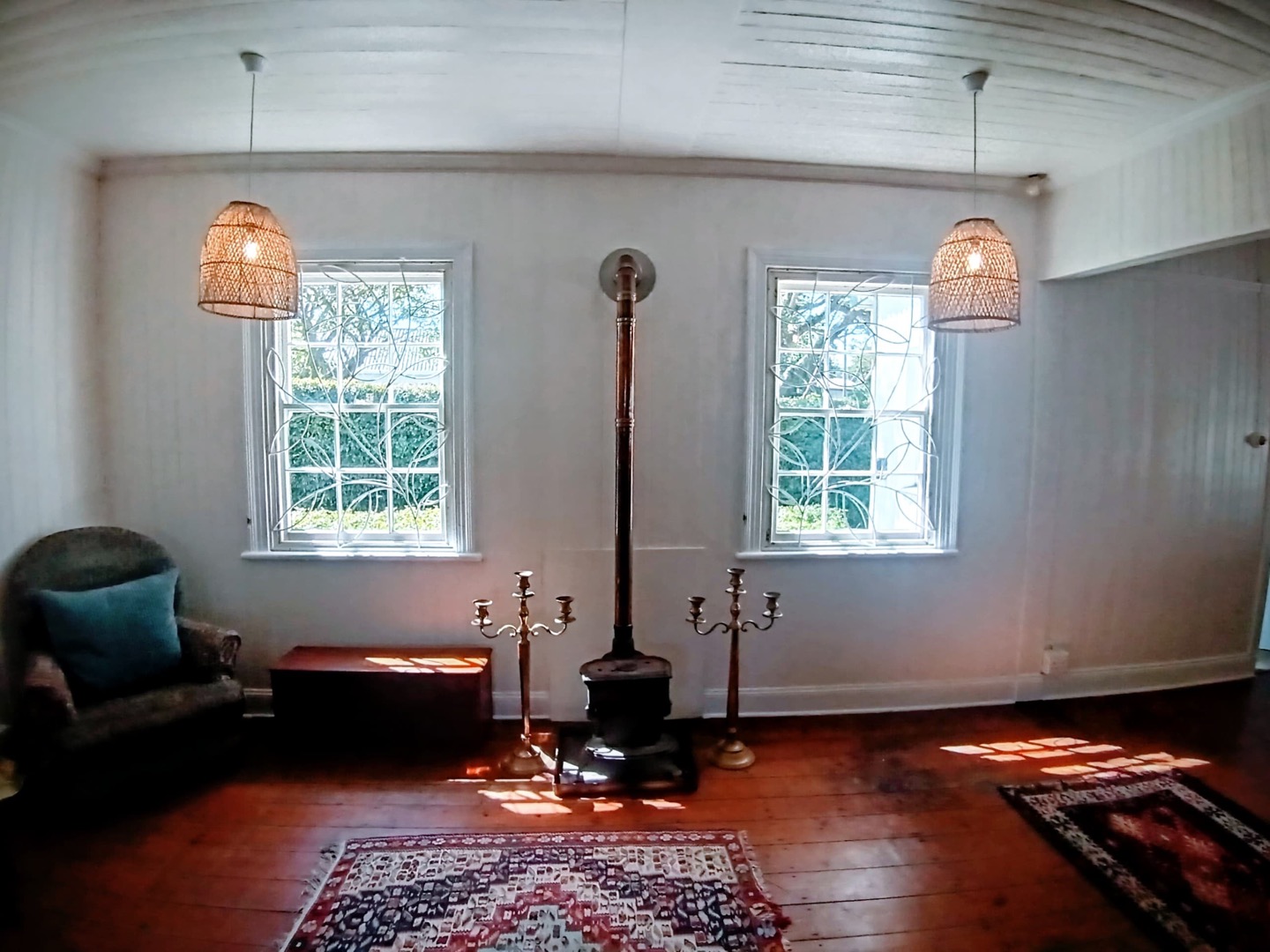 Inside, this character-filled home offers a comfortable layout spanning 146.00 sqm. It comprises of two bedrooms, two bathrooms (one en-suite), an open plan lounge and dining room, all featuring charming wood ceilings and floors. The open plan kitchen with double sink, gas supply and a spacious pantry, overlooks the living room area. A cozy cast iron fireplace adds warmth and ambiance during the colder months.