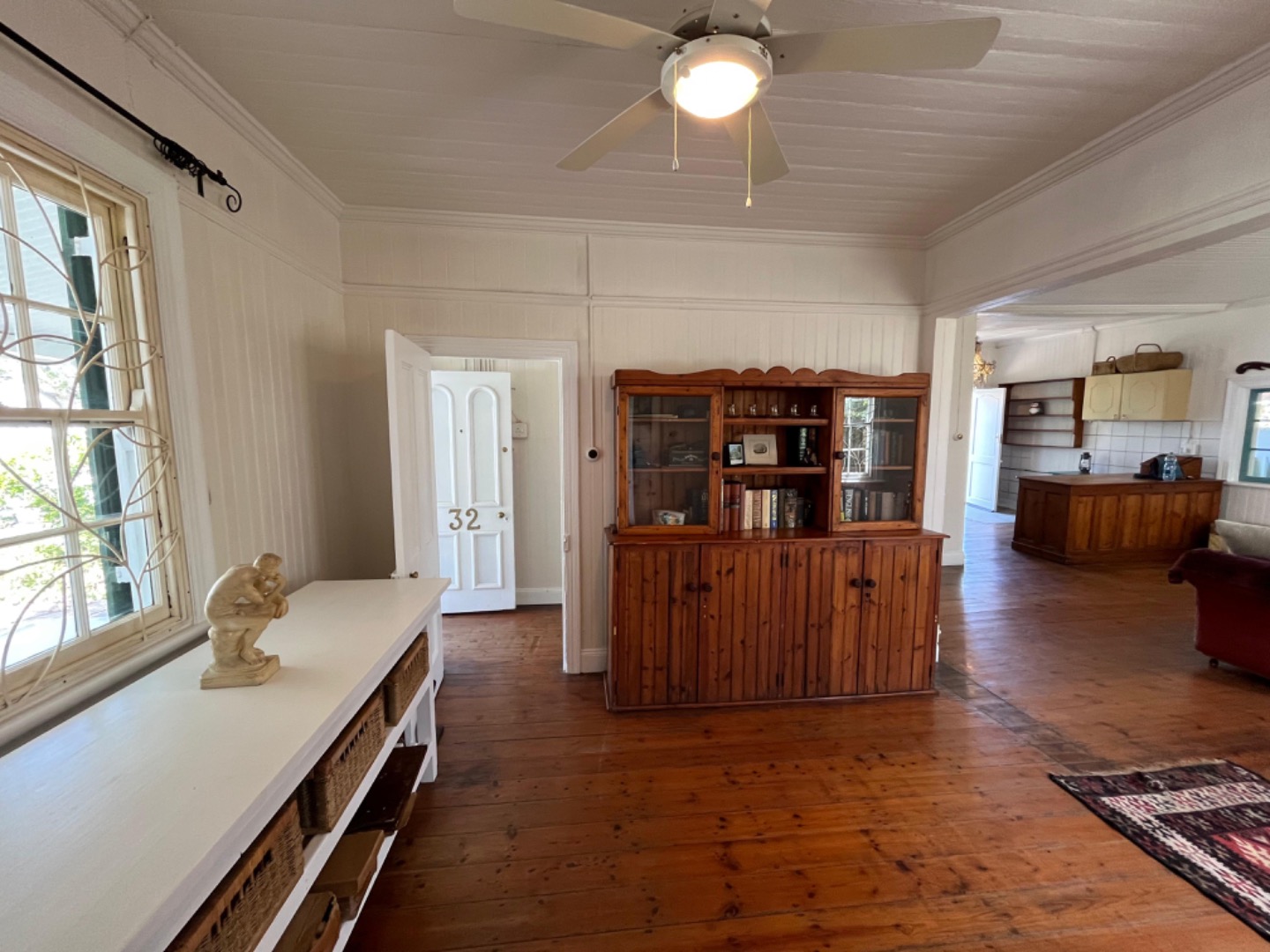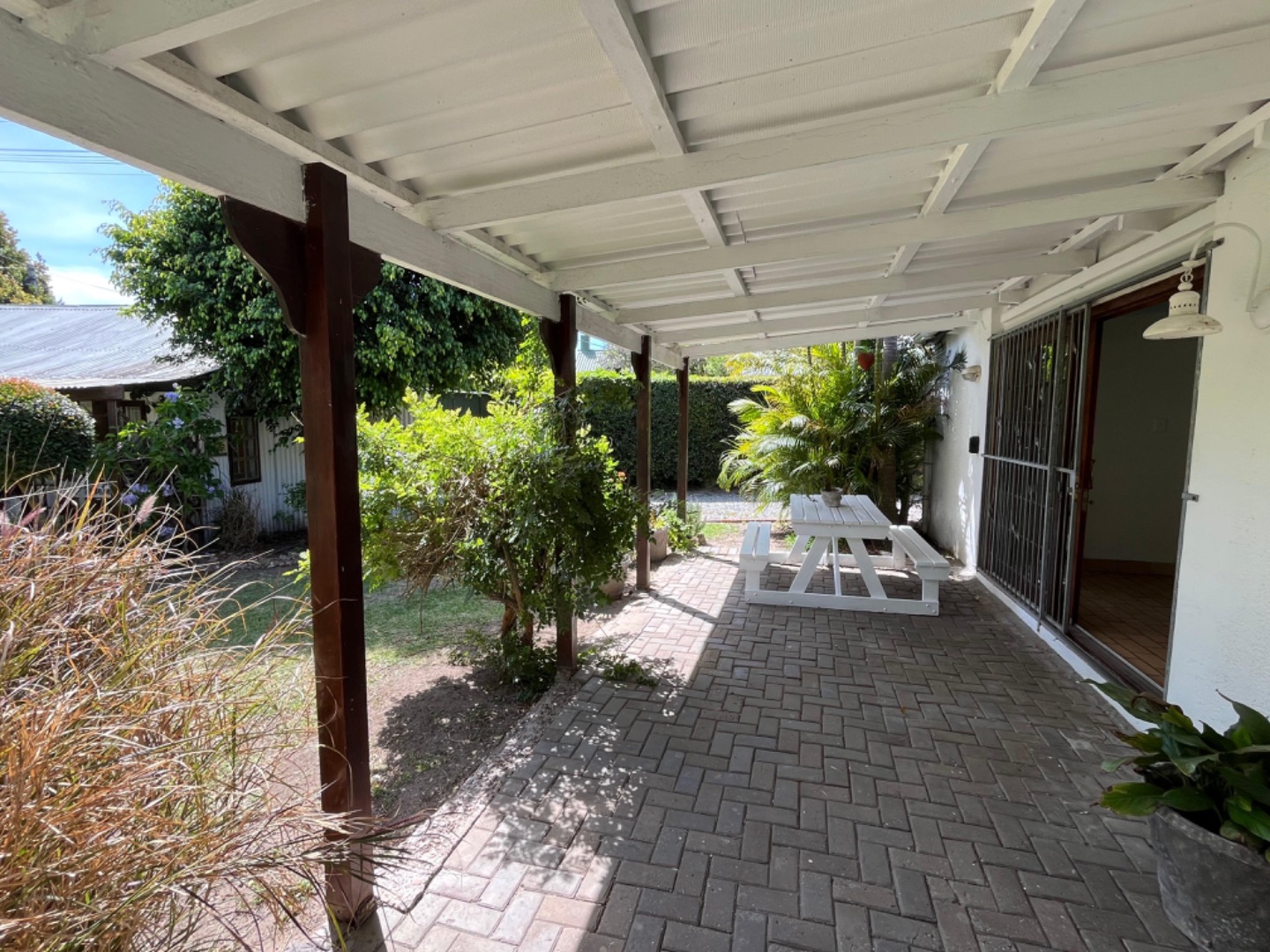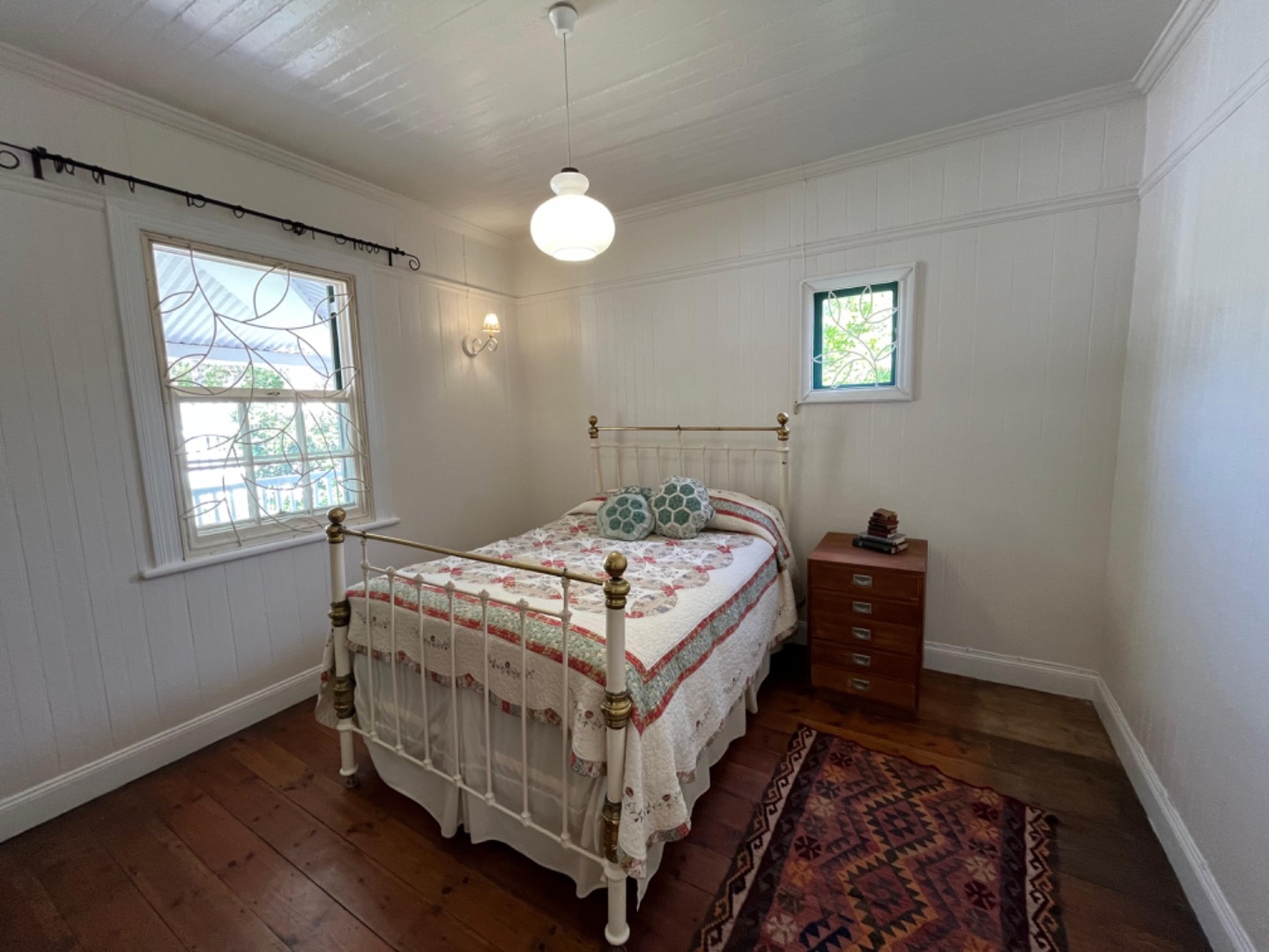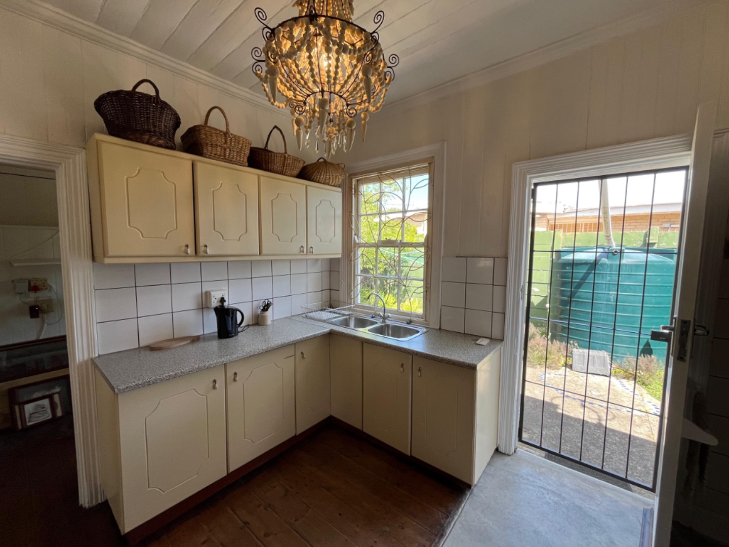 Inside, this character-filled home offers a comfortable layout spanning 146.00 sqm. It comprises of two bedrooms, two bathrooms (one en-suite), an open plan lounge and dining room, all featuring charming wood ceilings and floors. The open plan kitchen with double sink, gas supply and a spacious pantry, overlooks the living room area. A cozy cast iron fireplace adds warmth and ambiance during the colder months.