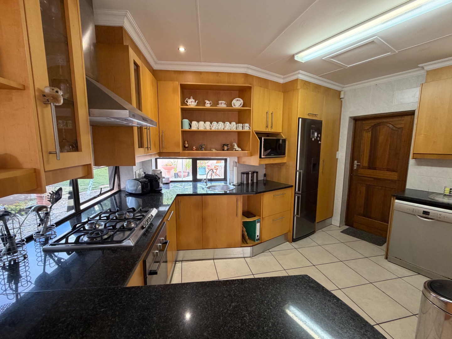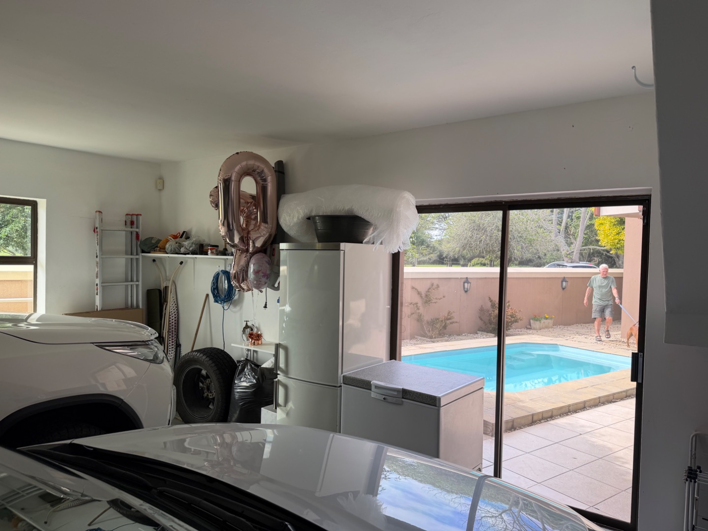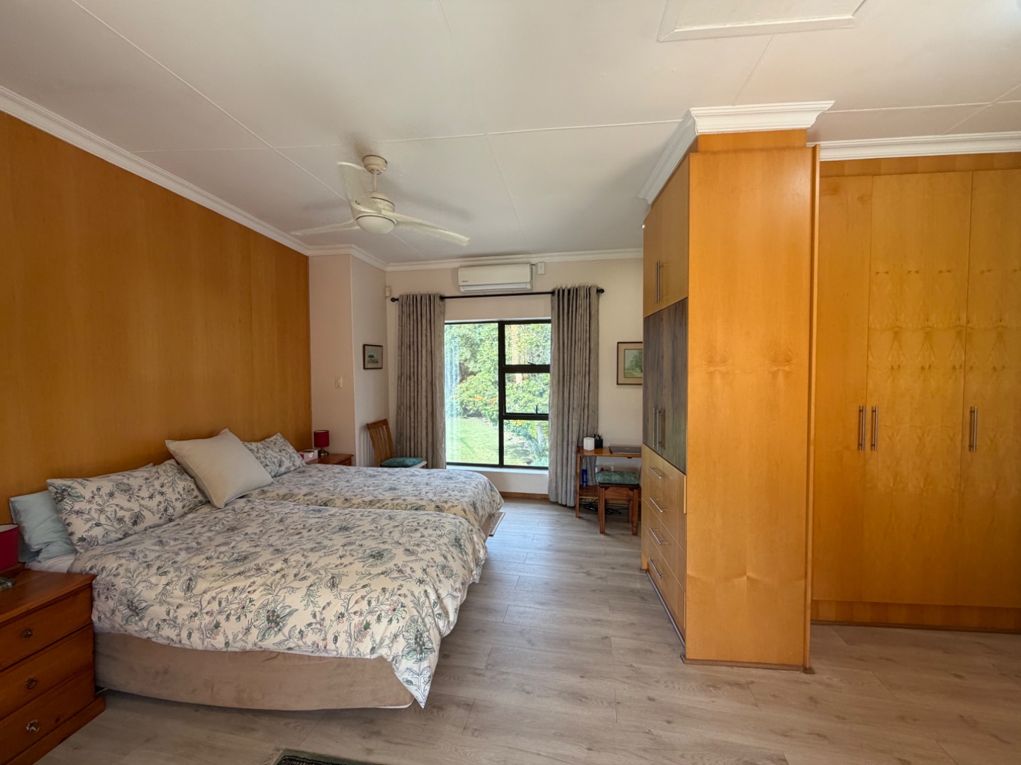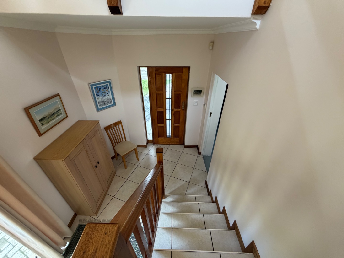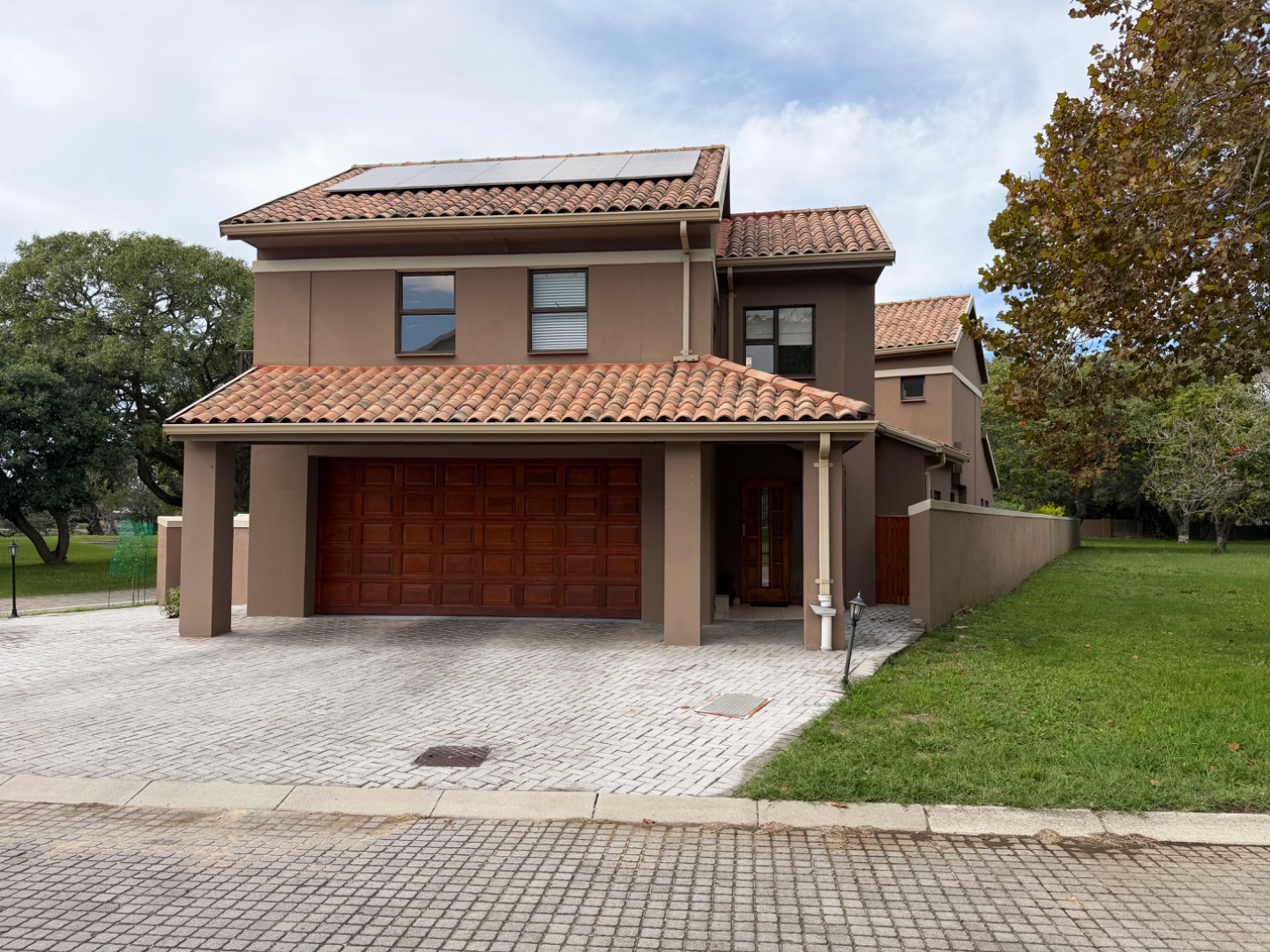 Outdoor living is equally impressive, with a private swimming pool, expansive patio, and charming balconies offering scenic views from the first-floor bedrooms. The property further benefits from a beautiful, colorful, well-maintained enclosed garden and a built-in braai, ideal for entertaining. Essential utilities include a double garage on remote, a dedicated laundry area, ample storage, a 50 000L underground water reservoir, filtered drinking water tank, and modern energy solutions such as solar panels and an 8 KVA battery inverter. The estate's pet-friendly policy and club house access further enrich the lifestyle. Prospective purchasers are invited to arrange a private viewing to fully appreciate this remarkable home.
