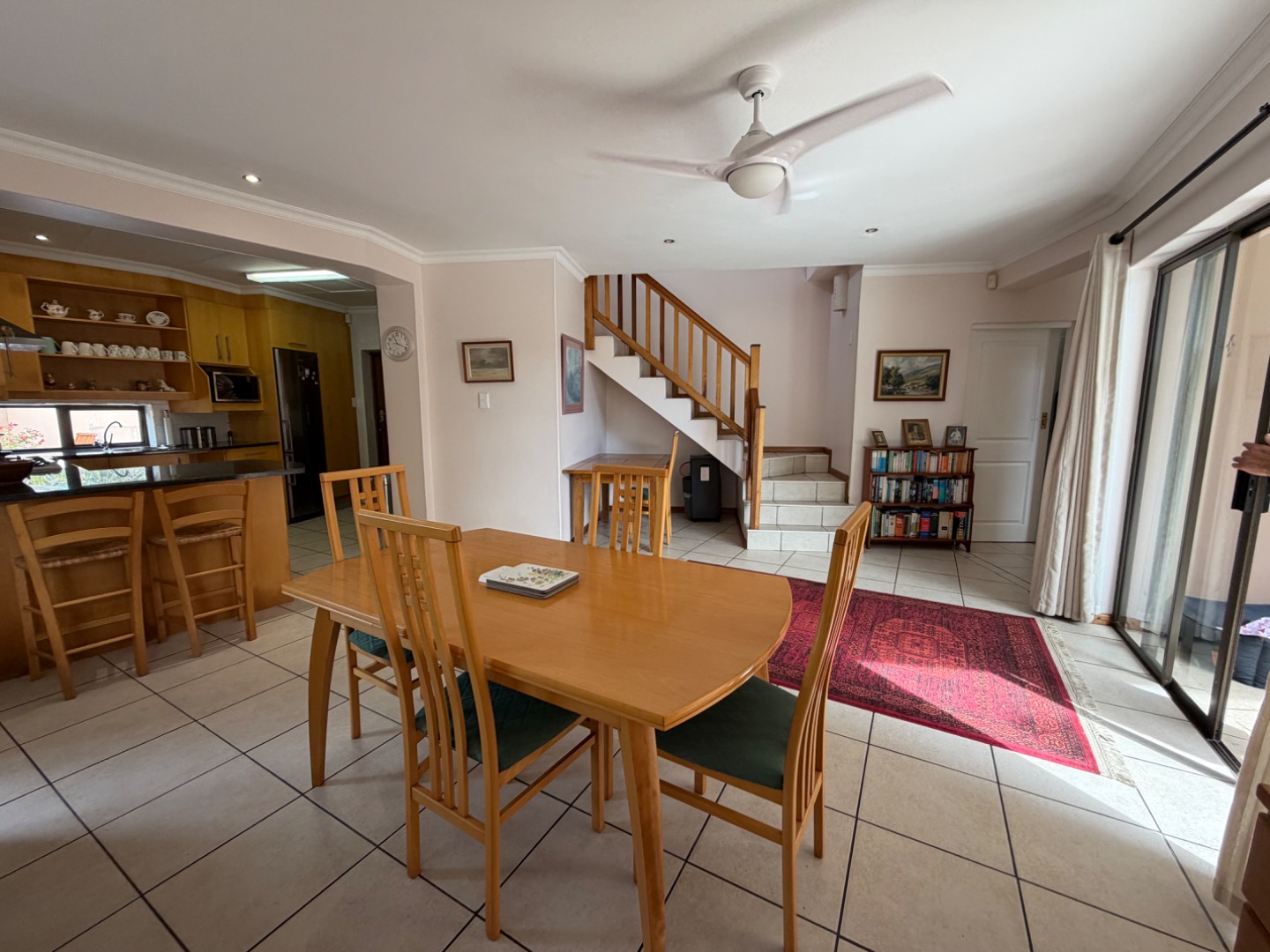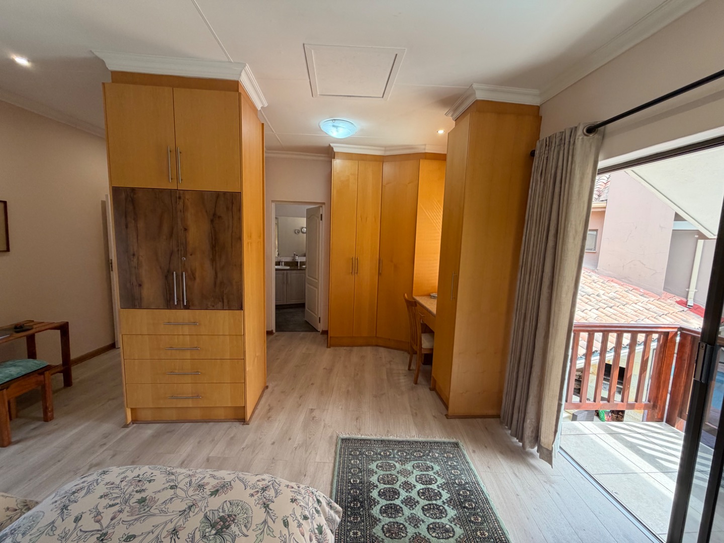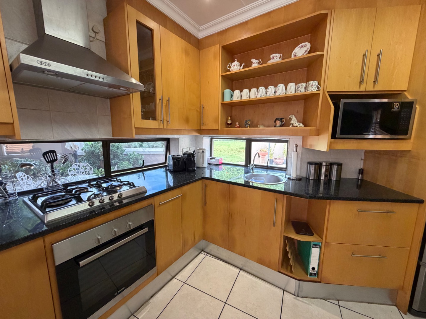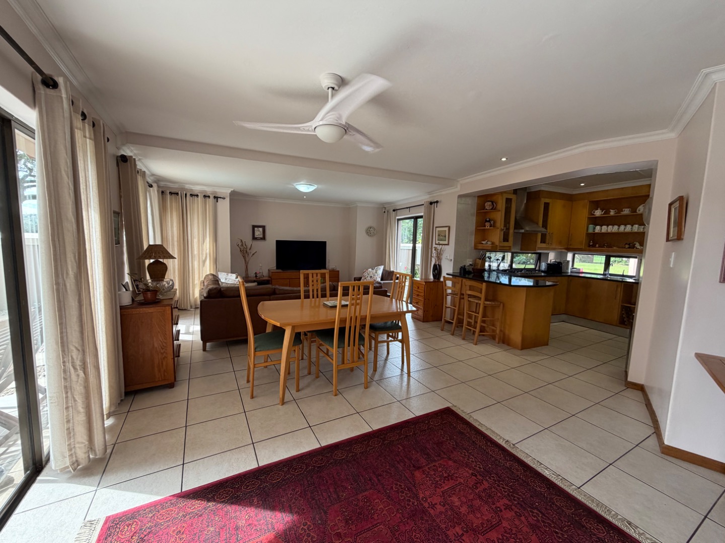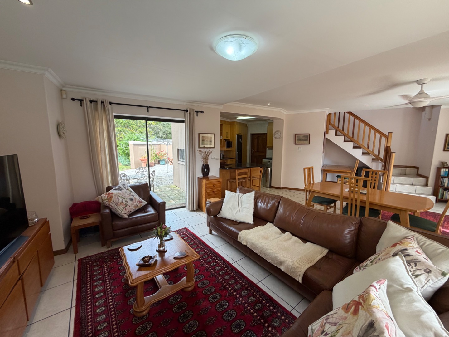Outdoor living is equally impressive, with a private swimming pool, expansive patio, and charming balconies offering scenic views from the first-floor bedrooms. The property further benefits from a beautiful, colorful, well-maintained enclosed garden and a built-in braai, ideal for entertaining. Essential utilities include a double garage on remote, a dedicated laundry area, ample storage, a 50 000L underground water reservoir, filtered drinking water tank, and modern energy solutions such as solar panels and an 8 KVA battery inverter. The estate's pet-friendly policy and club house access further enrich the lifestyle. Prospective purchasers are invited to arrange a private viewing to fully appreciate this remarkable home.