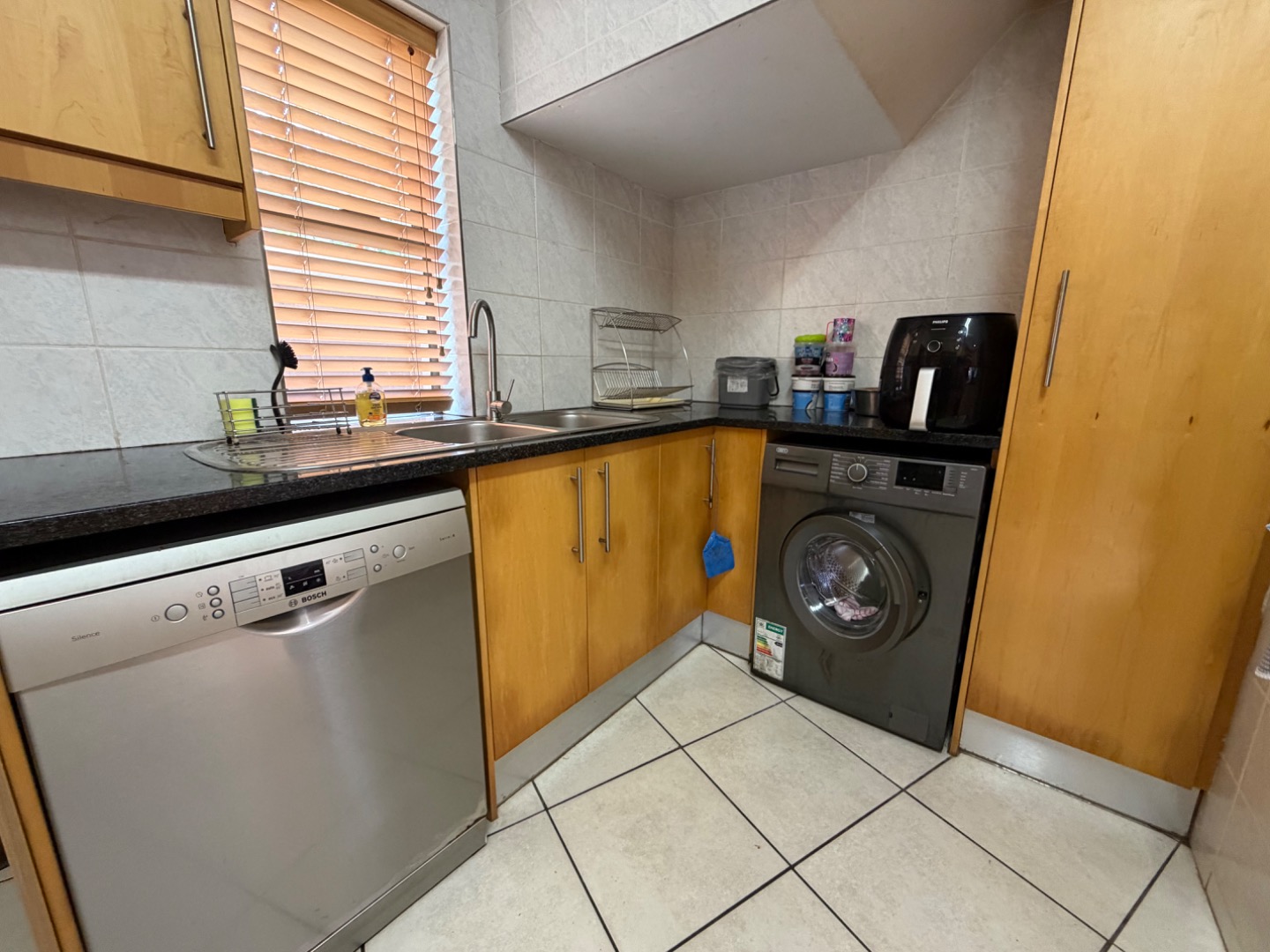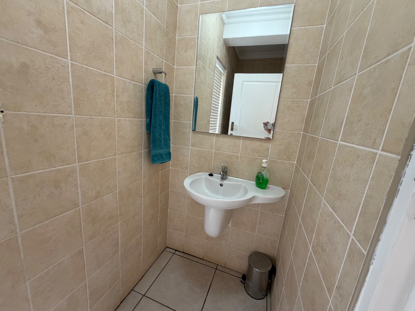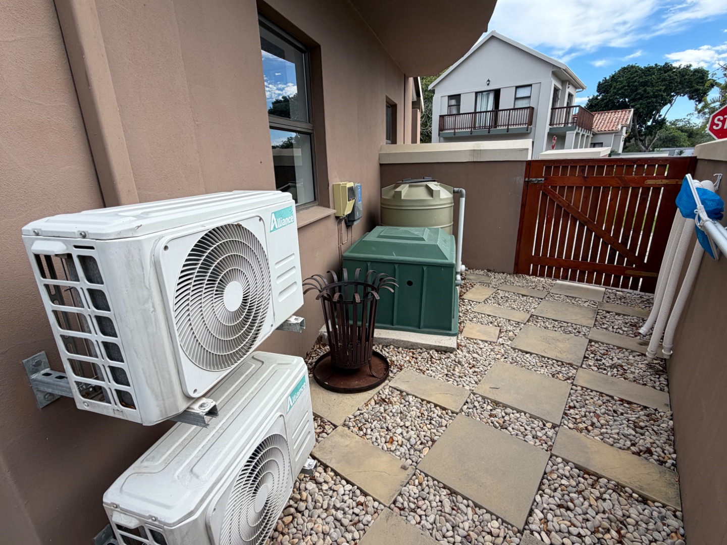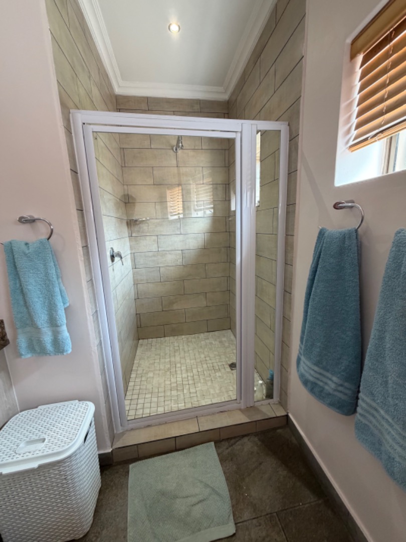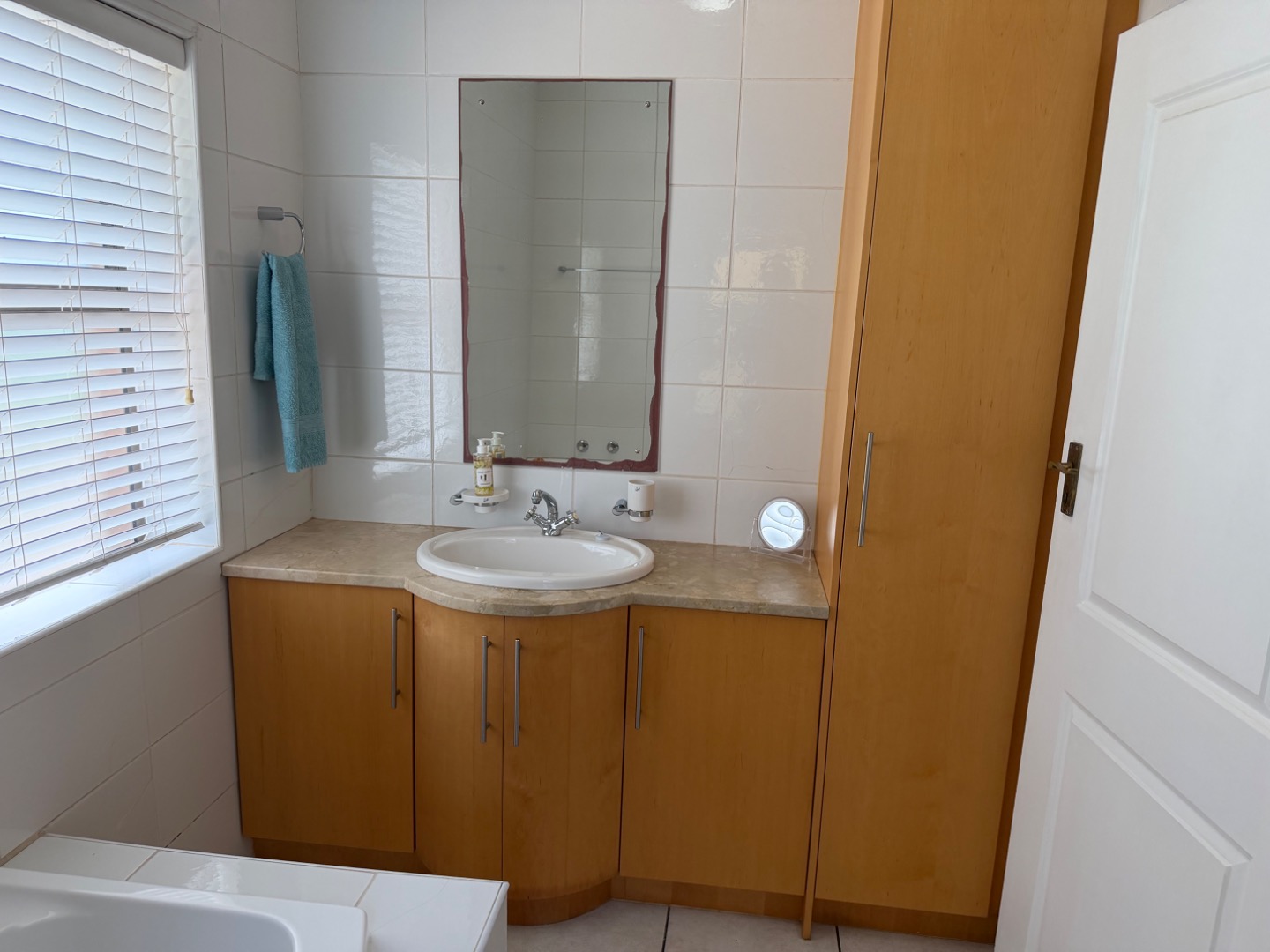 This meticulously designed residence spans 281 square meters on a double 767 square meter erf, featuring three well-appointed bedrooms with air conditioning in each bedroom and two and a half bathrooms, including a private ensuite and guest toilet. The interior boasts an open-plan, contemporary custom-made kitchen with granite tops, gas hob with electric oven, scullery/laundry configuration, connecting with the elegant TV lounge and dining room. Practical amenities such as a dedicated study and sliding doors enhance comfort and functionality.