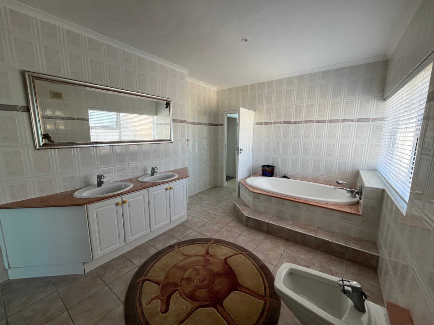 The interior features a well-appointed kitchen with modern white cabinetry, granite countertops and a scullery. A built-in bar, spacious lounge, and family TV room provide versatile living areas. Four generous bedrooms, including three en-suites, ensure comfort and privacy, complemented by an entrance hall and guest toilet. There is a separate flatlet which is great for the extra guests.