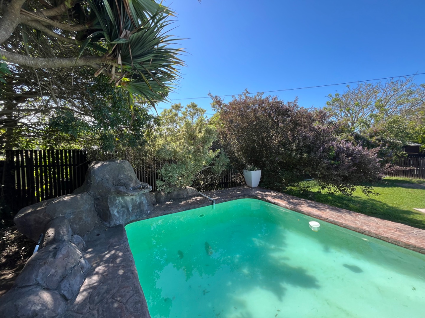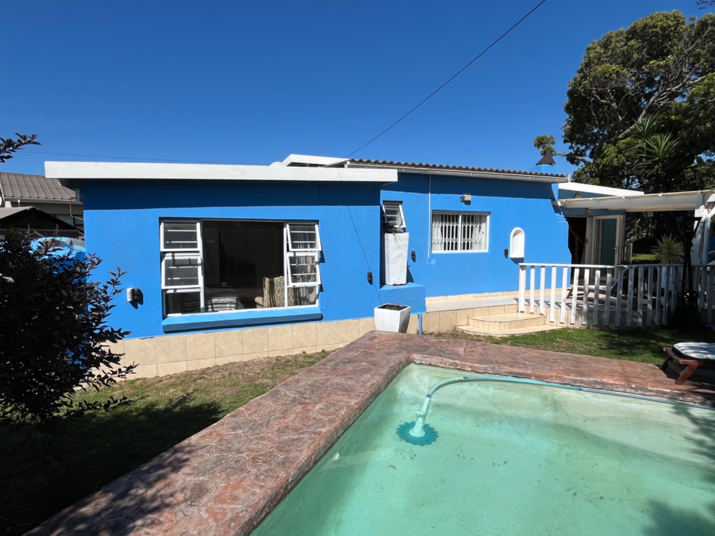 In good condition, the home doesn't need any expensive renovations or repair work. Just move in. Extras include a 5000l water tank to top up the pool or garden, a safe, new pool pump, and indoor wash line. The property is fully enclosed with palisade fence on the road entrance side, and timber slatted fencing all around. The street has been paved recently, and the location is such that its easy to access the main R72 to Rosehill Mall, or head to the beachfront along a beautiful paved road.