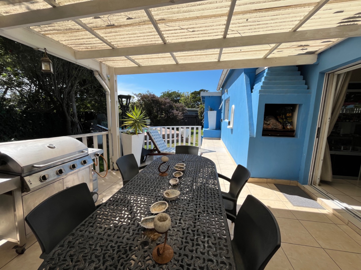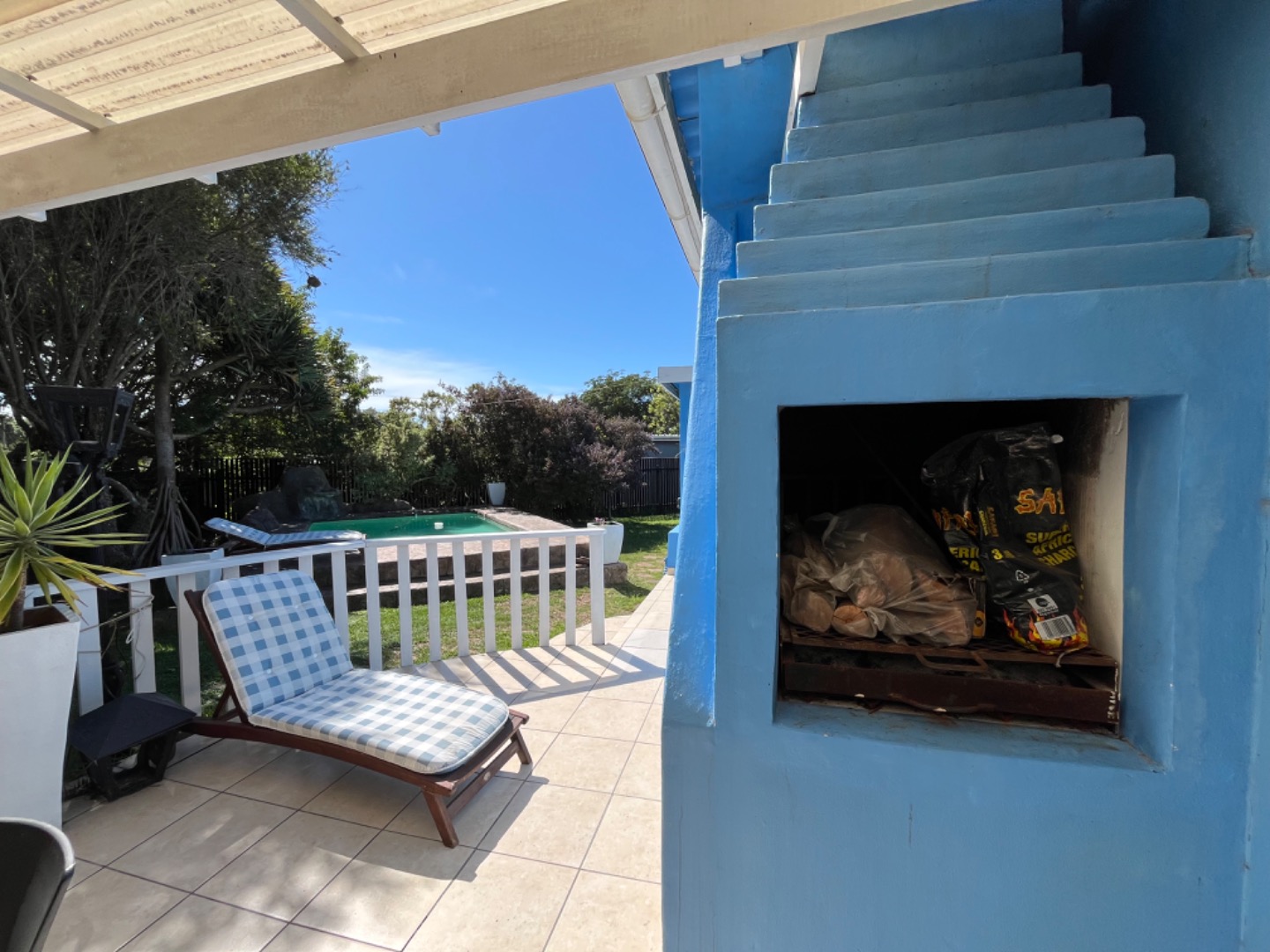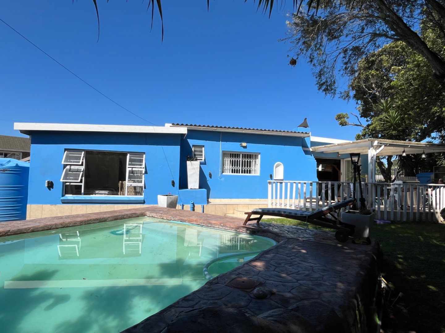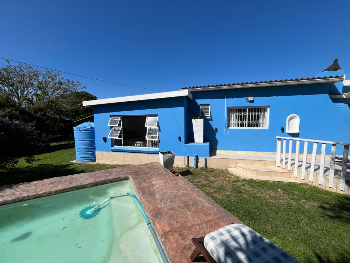 In good condition, the home doesn't need any expensive renovations or repair work. Just move in. Extras include a 5000l water tank to top up the pool or garden, a safe, new pool pump, and indoor wash line. The property is fully enclosed with palisade fence on the road entrance side, and timber slatted fencing all around. The street has been paved recently, and the location is such that its easy to access the main R72 to Rosehill Mall, or head to the beachfront along a beautiful paved road.